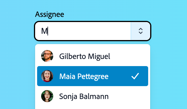 A combo box combines a text input with a listbox, allowing users to filter a list of options to items matching a query.
