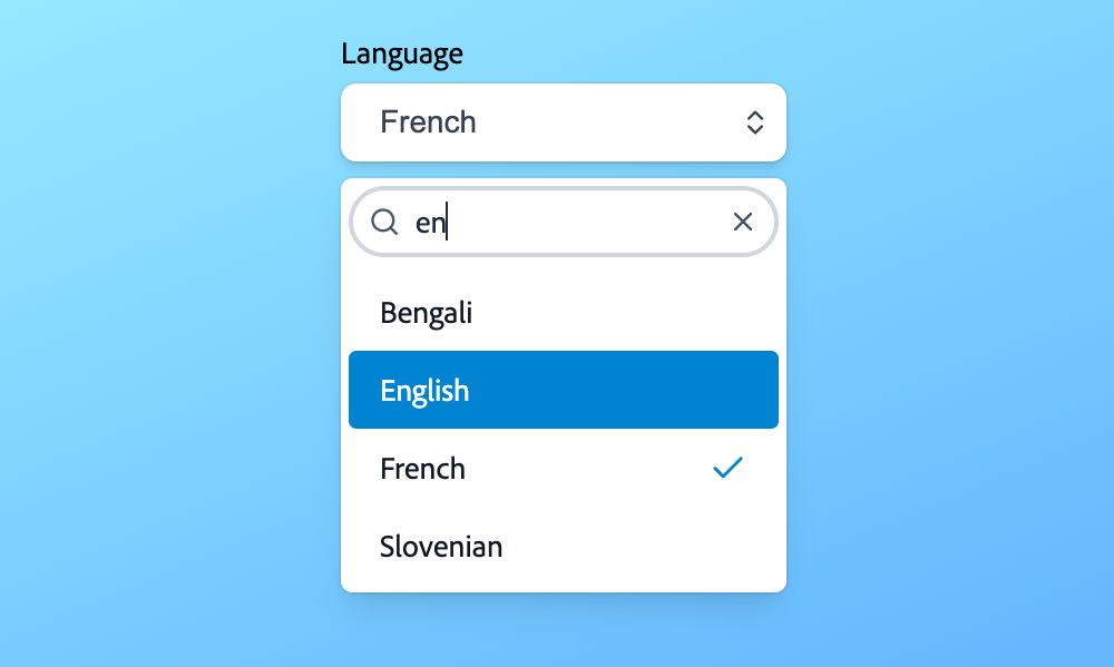 - Accessible – Follows the ARIA listbox pattern, with support for items and sections, and slots for label and description elements within each item for improved screen reader announcement.