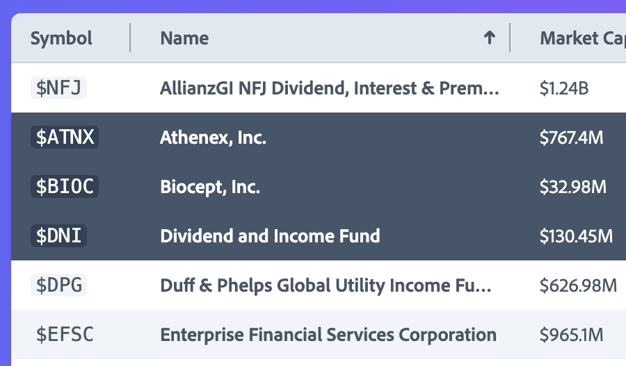 selectedRows | HTMLElement[] | Returns the currently selected rows within the table if any. |